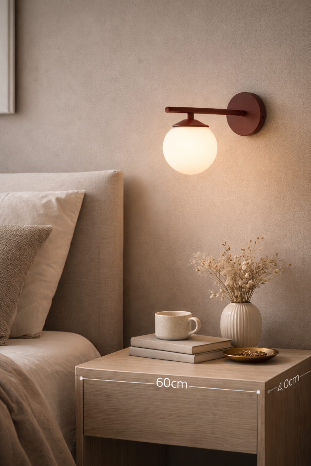Refined and sculptural, Aria is a modern wall appliqué designed to add depth, warmth, and character to any space. A slim horizontal arm meets a softly rounded glass globe, creating a balanced silhouette that feels both contemporary and timeless.